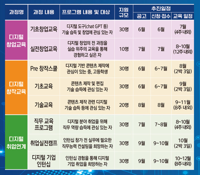 디지털 창업·창작·취업연계 등 지원…인턴십 참여 기회 등도 제공